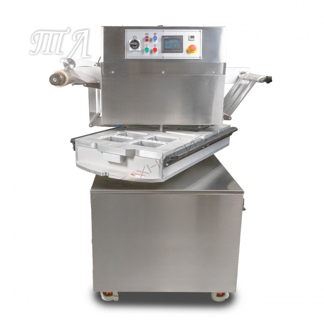 HVT-450R – Полуавтоматический ротационный запайщик лотков с функцией газонаполнения и вакуумирования.