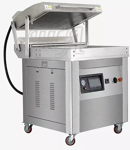 Корпус аппарата выполнен из пищевой нержавеющей стали марки SUS304, что полностью отвечает санитарно-гигиеническим стандартам пищевого производства. Вакуумная камера – из безопасного алюминиевого сплава. Сменные матрицы позволяют изменять размеры и форму упаковки.