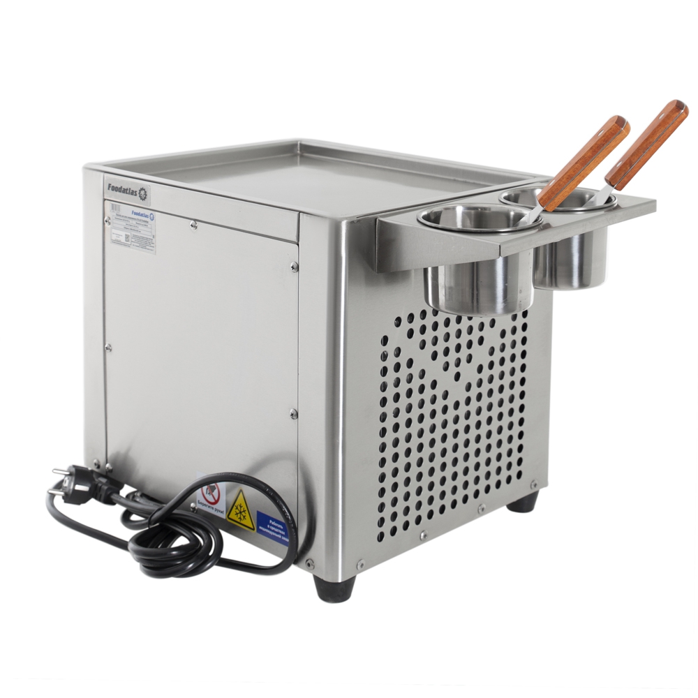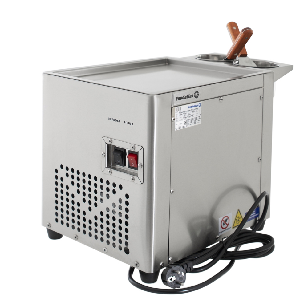Фризер для ролл мороженого FA-10 Foodatlas предназначен для приготовления ролл мороженого. Жареное мороженое – новое холодное лакомство, ставшее к сегодняшнему дню достаточно популярным в нашей стране. Оборудование для его приготовления представляет собой холодильную систему, заключенную в металлический корпус с рабочей поверхностью для «жарки» десерта при минусовой температуре. Рецептов приготовления бесподобного десерта много и каждый может придумать свой уникальный. Чаще всего процесс жарки сопровождается добавлением сиропов или свежих фруктов, также используют мелко рубленный или тертый орех и шоколад.