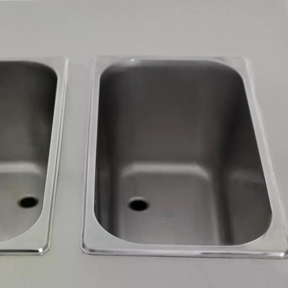 - Объем для одной емкости 5,6 литра, всего в устройстве их две;