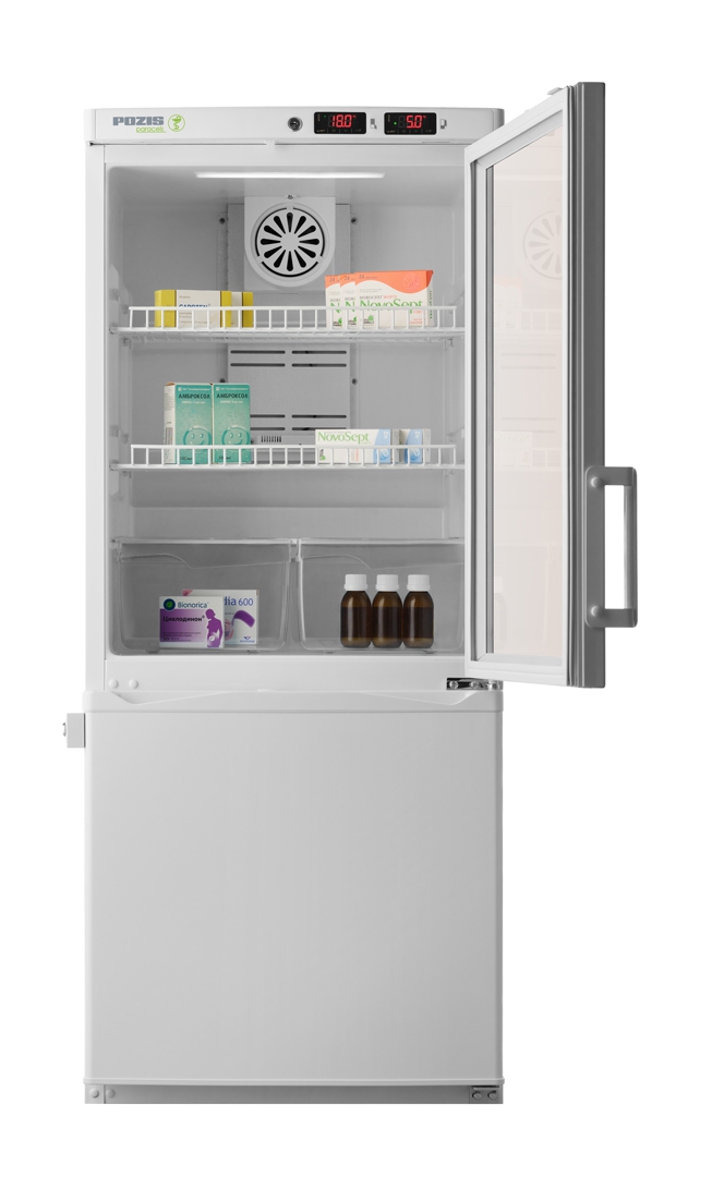 Предназначен для работы в лабораториях различных направлений и диагностических центрах (ПЦР, биохимические, иммунологические и гематологические исследования), на станциях переливания крови и в серологических лабораториях, при оснащении аптек, аптечных производственных отделений и фармацевтических предприятий, прививочных кабинетов и ветеринарных клиник. Холодильник обеспечивает потребность в хранении лекарственных препаратов, средств, образцов, тест-наборов и других фармацевтических средств при температуре от +2°С до +15°С в холодильной камере и при температурах от минус 10°С до минус 25°С в морозильной камере. Основные характеристики: 2 микропроцессорных регулятора температур со сверхчувствительными датчиками температуры, система принудительной циркуляции воздуха в холодильной камере, в холодильном отделении дверь стеклянная с замком, в морозильном отделении дверь металлическая с замком, автоматическое поддержание температуры в камерах, сигнализация при отклонении температуры от заданной, отображение температуры на табло панели управления, отключение вентилятора при открывании двери.