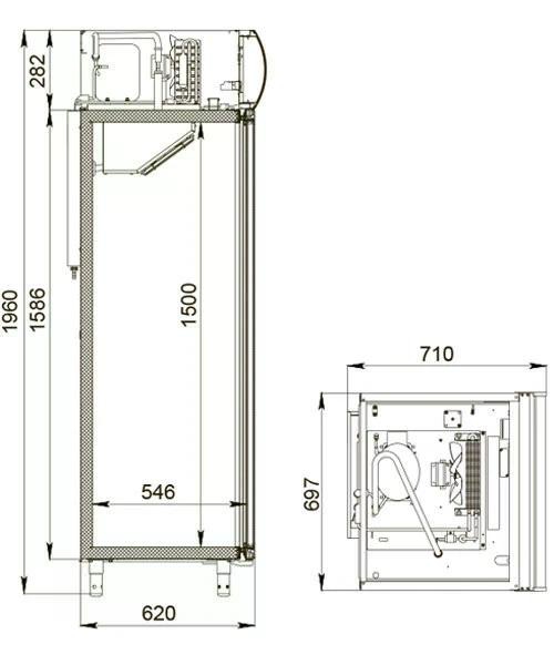 Обеспечивает корректные условия хранения напитков, молочной продукции, охлаждённых ингредиентов и готовых изделий при ежедневной эксплуатации. - Полезный объём камеры 500 л