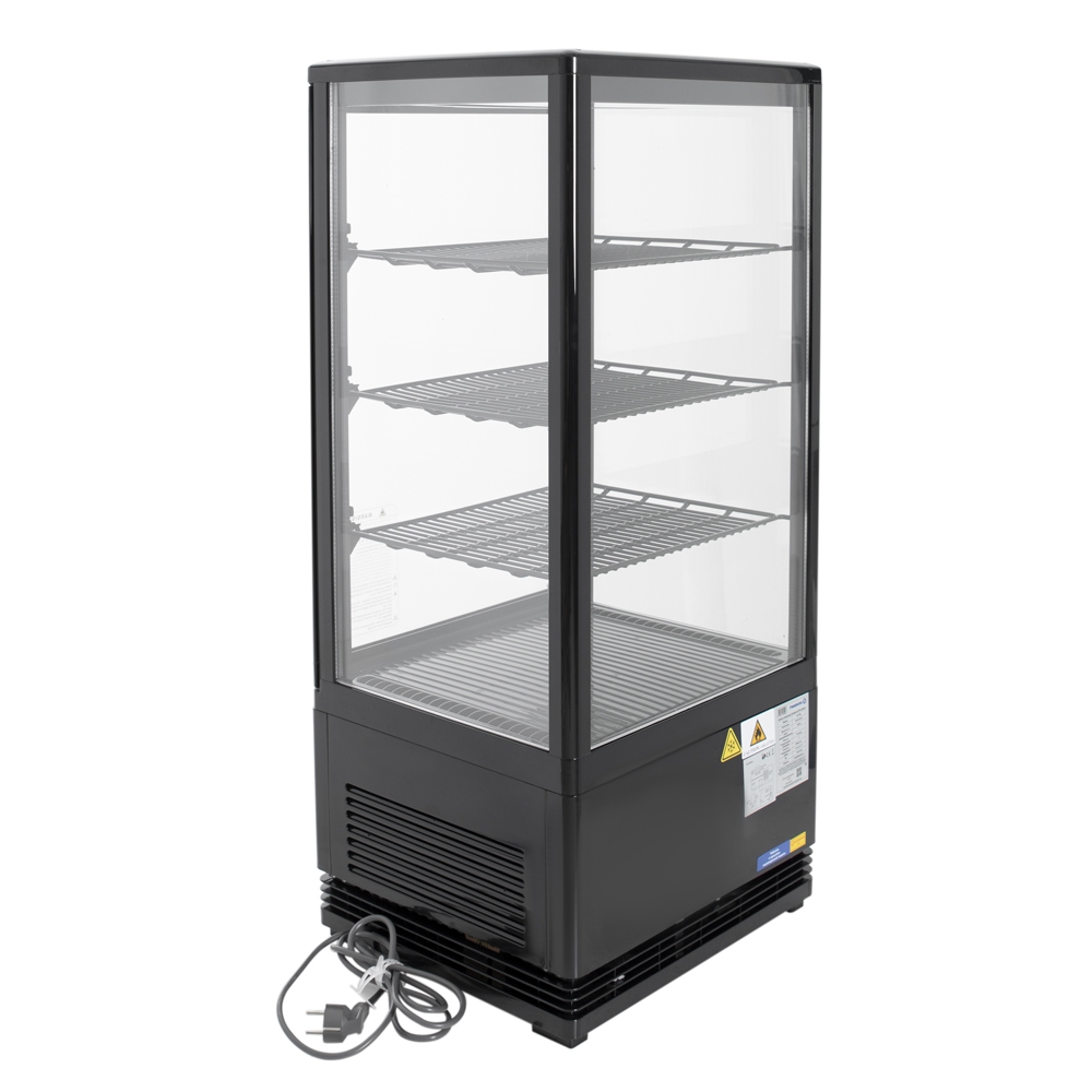 Компактная витрина устанавливается на столе или другой ровной поверхности. Габариты витрины составляют 428*386*960 мм, а объем камеры – до 78 литров. Конструкция подразумевает установку дополнительных полок или противней, чтобы увеличить полезное пространство. Металлический корпус не требует особого ухода. С поверхности легко удаляются загрязнения влажной салфеткой.