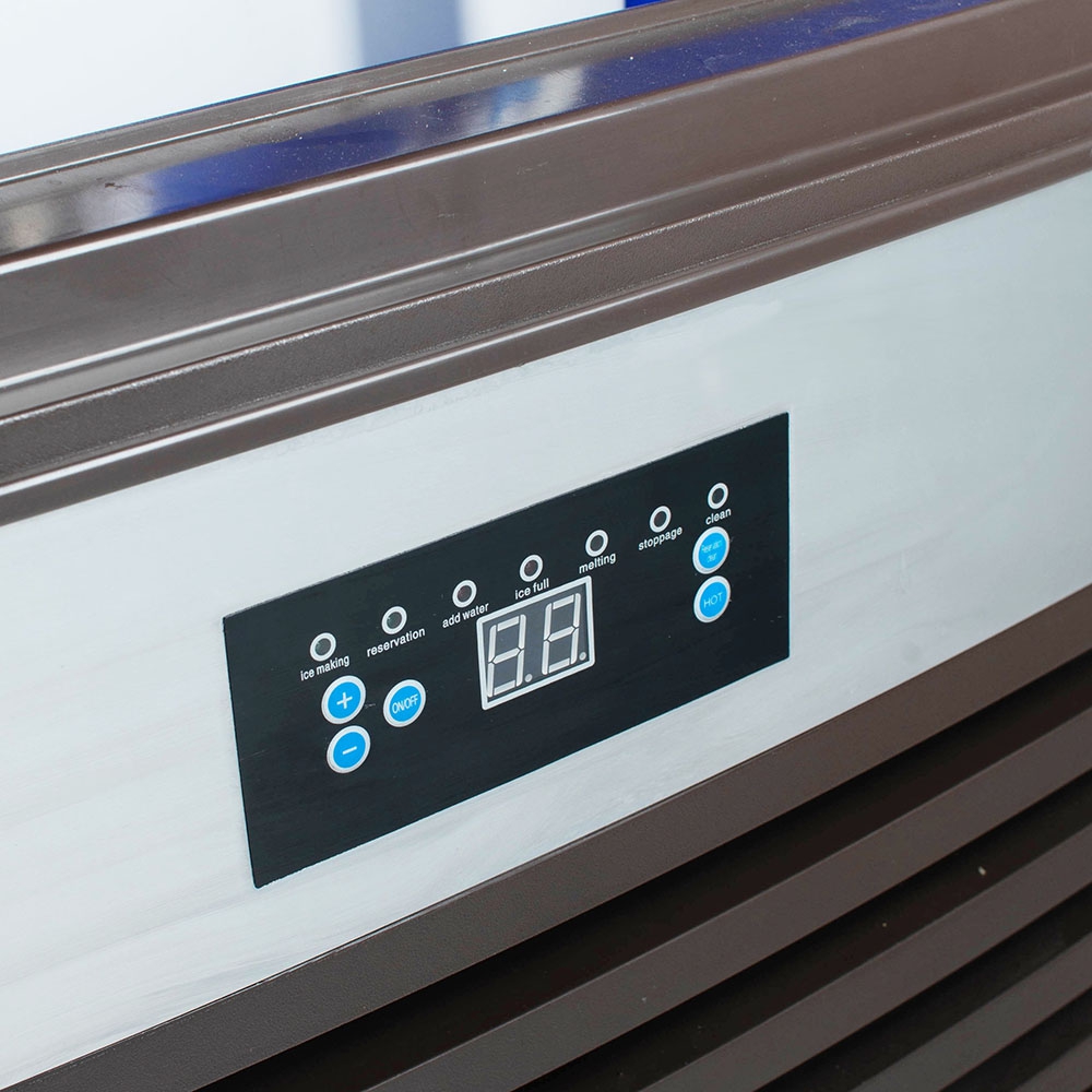 К преимуществам льдогенератора следует отнести автоматическую проверку наличия уровня воды в аппарате, «умное» электронное управление, индикаторы готовности льда, самоочищение.