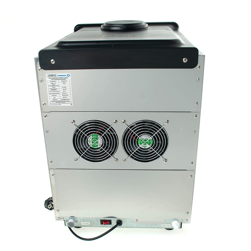Модель, представленная в каталоге нашего интернета-магазина, вырабатывает до 45 кг пищевого льда в сутки. Благодаря своим компактным размерам, может располагаться в любом удобном месте. Стоит помнить, что аппарат не нужно устанавливать под воздействие прямых солнечных лучей и возле источника повышенных температур. При необходимости в льдогенератор BY-Z45FT Foodatlas вставляется бутыль для бесперебойной работы.