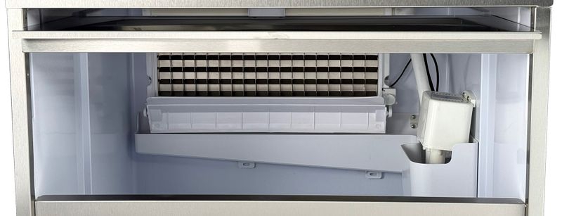 Льдогенератор HURAKAN HKN-IMC110M производит лед формы кубик. Особенностью данной модели льдогенераторов является получение льда, соединенного в пластину, по форме напоминающую плитку шоколада. Пластина падает в бункер и разбивается на кубики. Для получения более качественного и прозрачного льда рекомендуется использовть подготовленную отфильтрованную воду.