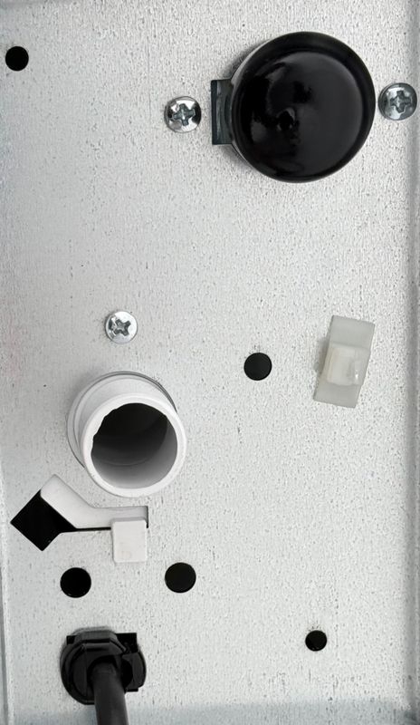 – Многофункциональная кнопка с красным индикатором (переключает в режим очистки и сигнализирует о неисправности или заполнении бункера для льда)
