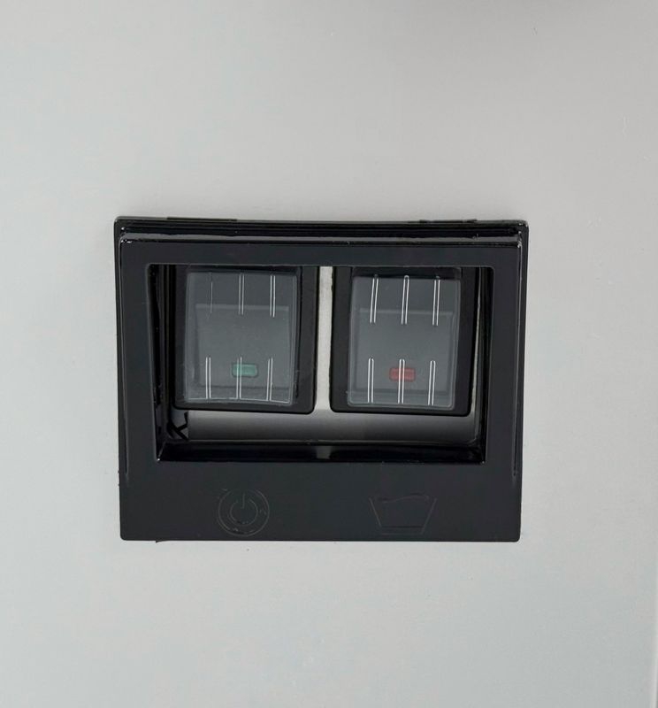– Многофункциональная кнопка с красным индикатором (переключает в режим очистки и сигнализирует о неисправности или заполнении бункера для льда)