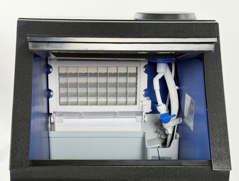Льдогенератор HURAKAN HKN-IMC25 производит лед формы кубик. Особенностью данной модели льдогенераторов является получение льда, соединенного в пластину, по форме напоминающую плитку шоколада. Пластина падает в бункер и разбивается на кубики. Для получения более качественного и прозрачного льда рекомендуется использовть подготовленную отфильтрованную воду.