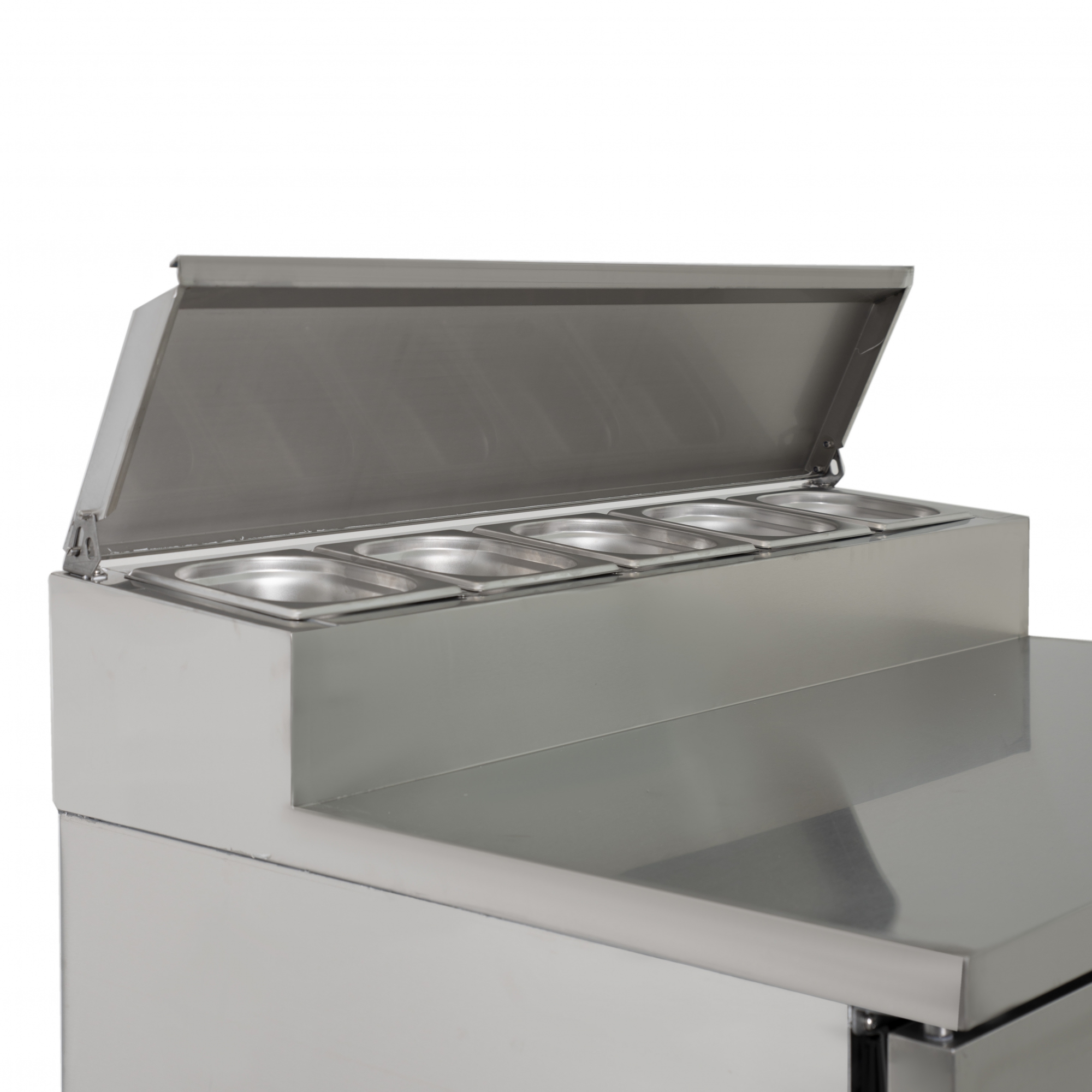 - Просторная рабочая поверхность: Столешница из высококачественной нержавеющей стали устойчива к механическим повреждениям и коррозии, а также легко моется. Она предоставляет достаточно места для раскатывания теста, нарезки ингредиентов и сборки пиццы, что ускоряет и упрощает процесс приготовления.