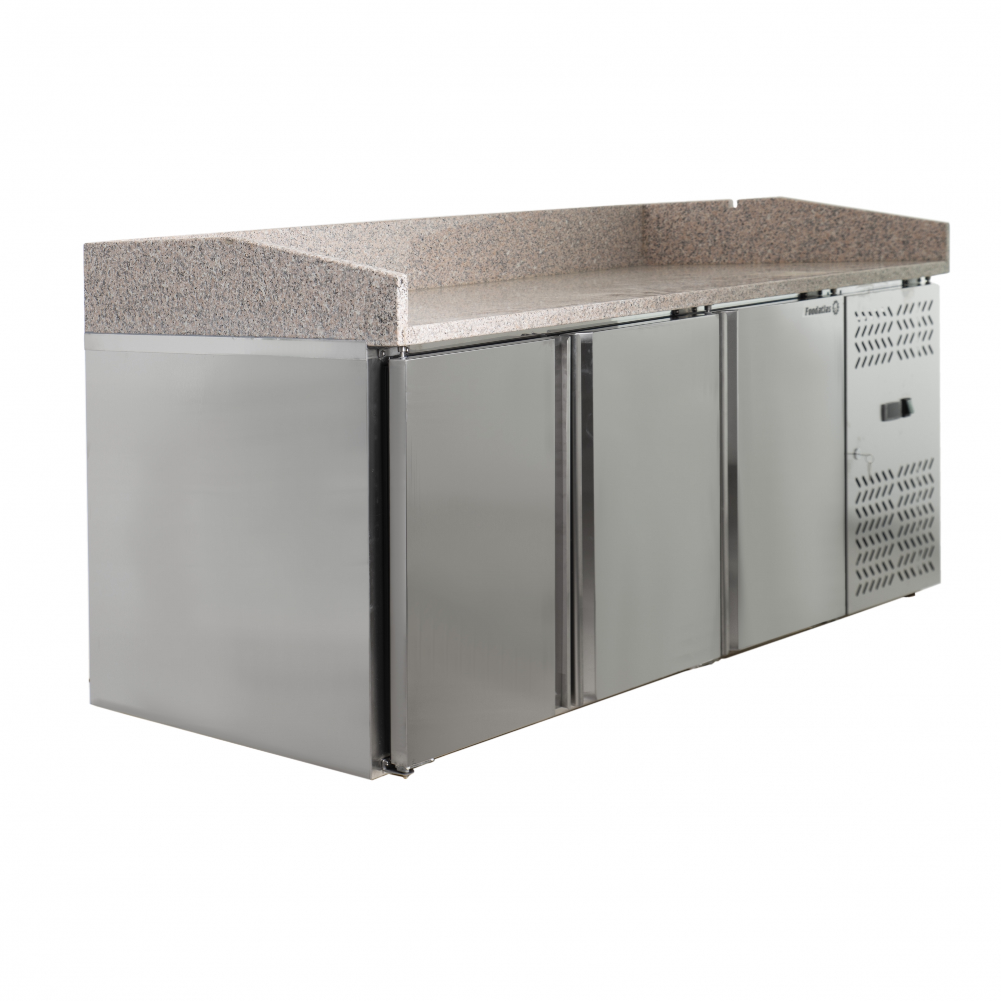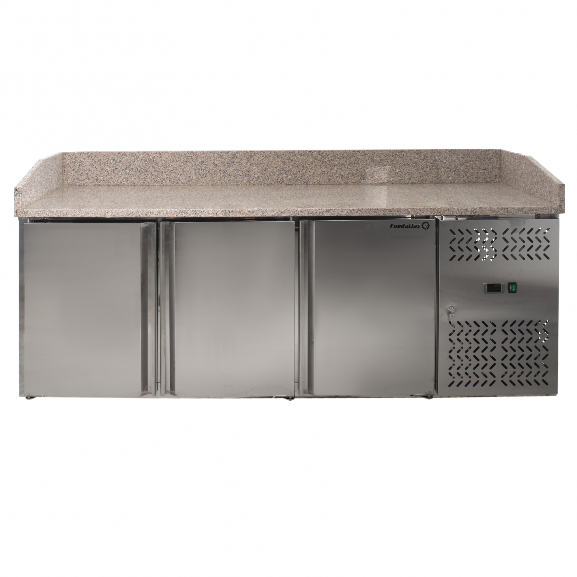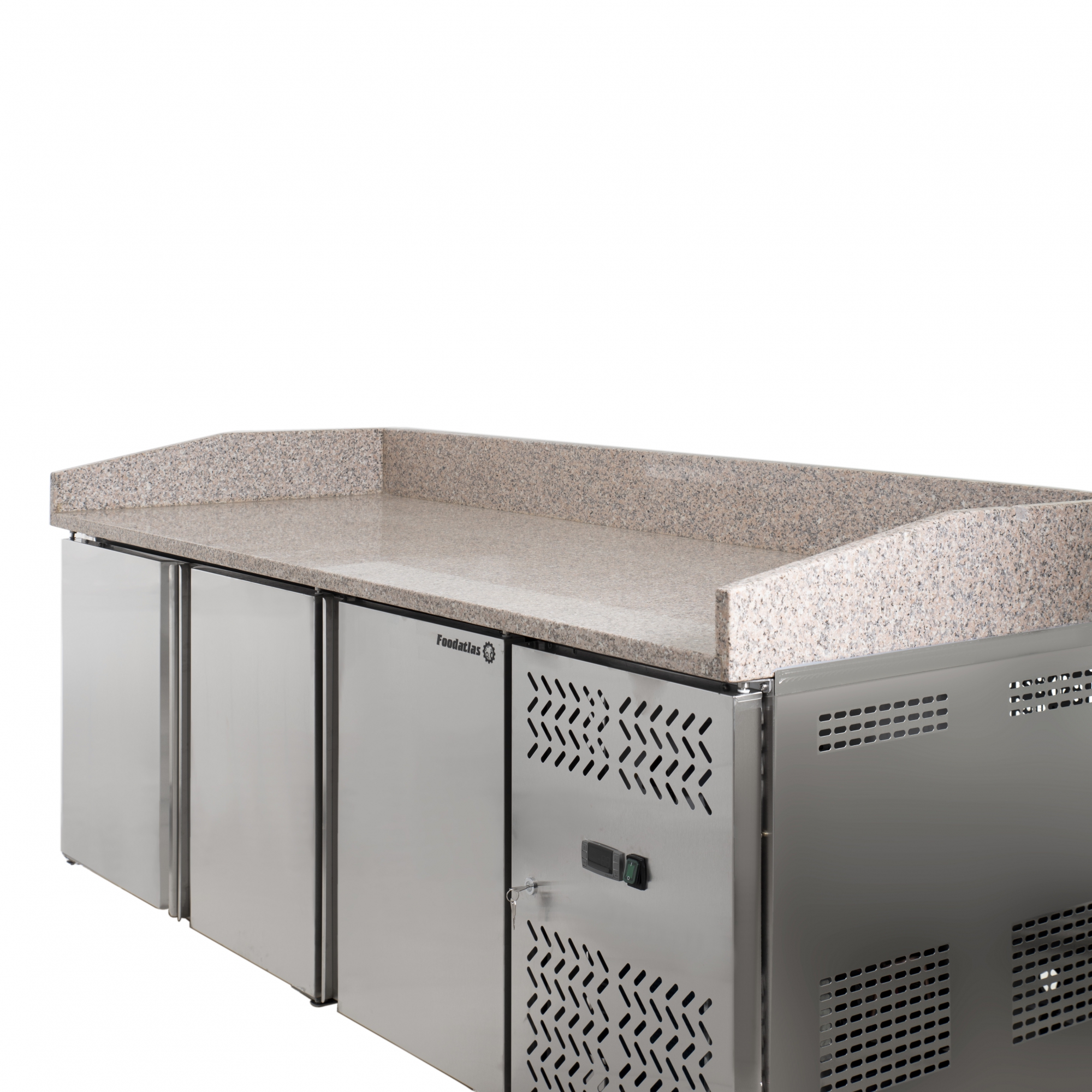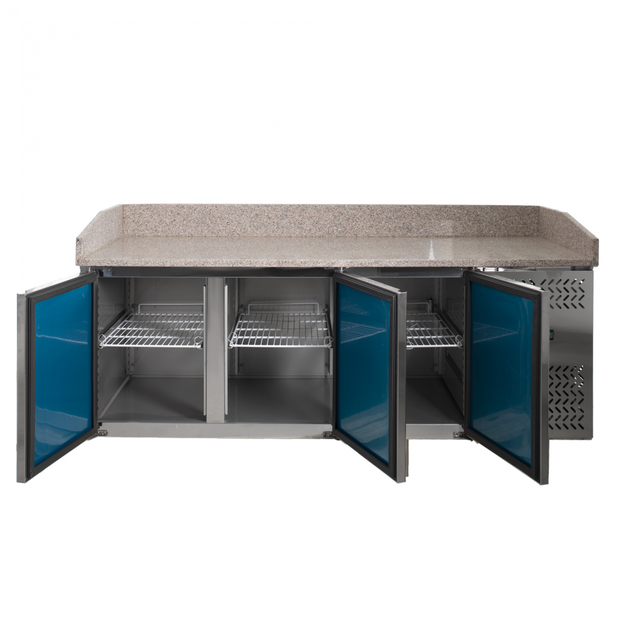 - Просторное рабочее пространство: С длиной 2000 мм, PZ3600TN предоставляет большое пространство для подготовки пиццы. Гранитная рабочая поверхность не только устойчива к механическим повреждениям, но и идеально подходит для работы с тестом, обеспечивая его отличное охлаждение и текстуру.
