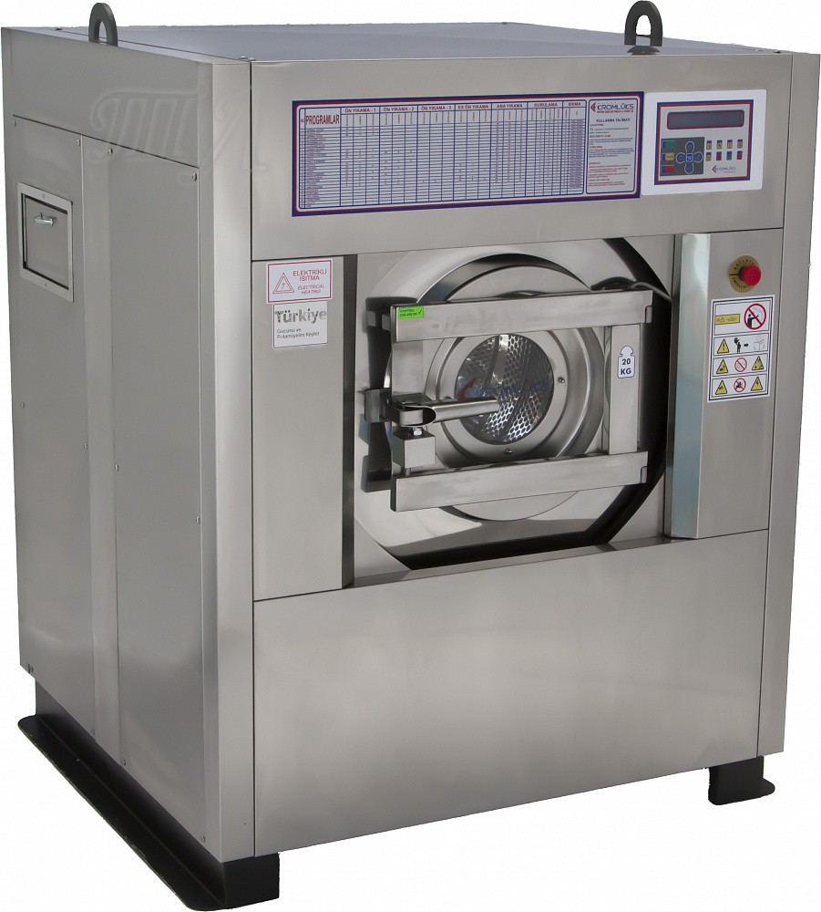 KOCYS-E/20 - Автоматическая стирально-отжимная машина предназначена для стирки, полоскания и отжима белья в прачечной и на предприятиях общественного питания. Благодаря выполнению трех функции (стирка-отжим-кипячение) в одной машине обеспечивается материальная экономия и экономия пространства. В зависимости от загрязненности белья имеется 15 стандартных программ и 10 специальных программ. При выборе соответствующей программы обеспечивается экономия потребления стирального порошка, воды, энергии и времени. Все поверхности, соприкасающиеся с бельем и водой изготовлены из нержавеющей стали AISI 304. Остаточная влажность после отжима составляет 40%. Возможна установка терминала оплат.