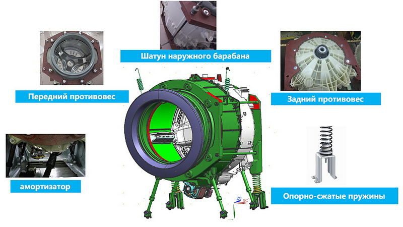 Цельный корпус производится из качественной гальванической стали с прочным порошковым покрытием, толщина которого составляет 1 мм. Барабан выполнен из нержавеющей стали марки SUS430, а бак – из долговечного пластика.