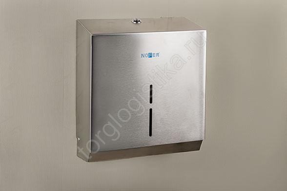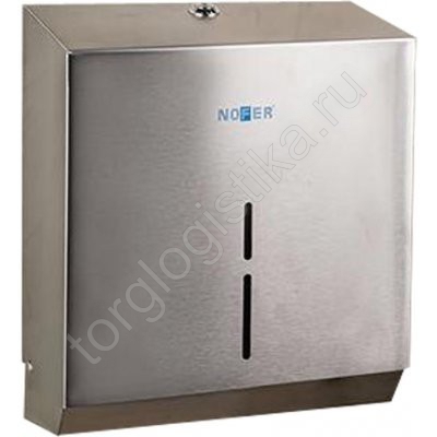 Диспенсер для листовых бумажных полотенец NOFER 04005.B изготовлен из нержавеющей стали глянцевого цвета. В комплекте с диспенсером поставляется монтажный комплект для крепления на стену и универсальный ключ. Благодаря корпусу толщиной 1,0 мм диспенсер является противоударным. Данная модель является упрощенным вариантом модели NOFER 04010, и в отличие от более дорогой модели не имеет полукруглых углов и пластиковой прослойки, которая уберегает руки посетителей от порезов. Поэтому она не может в полной мере называться антивандальной. Тем не менее данная модель является довольно популярная для установки в небольших заведениях, где аксессуары из нержавеющей стали удачно впишутся в интерьер.
