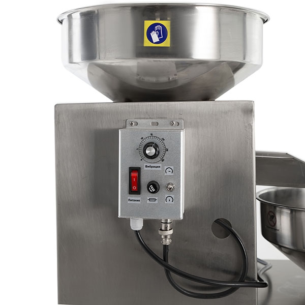 Маслодавка предварительно прогревает продукт до заданной температуры и постепенно осуществляет отжим. В результате получается прогретый жмых и отжим масла, который используется в дальнейшем приготовлении продуктов. Оборудование имеет габариты 800*590*1000 мм и может быть установлено на столе или специальной поверхности в цехе в доступности от розетки 220 В.
