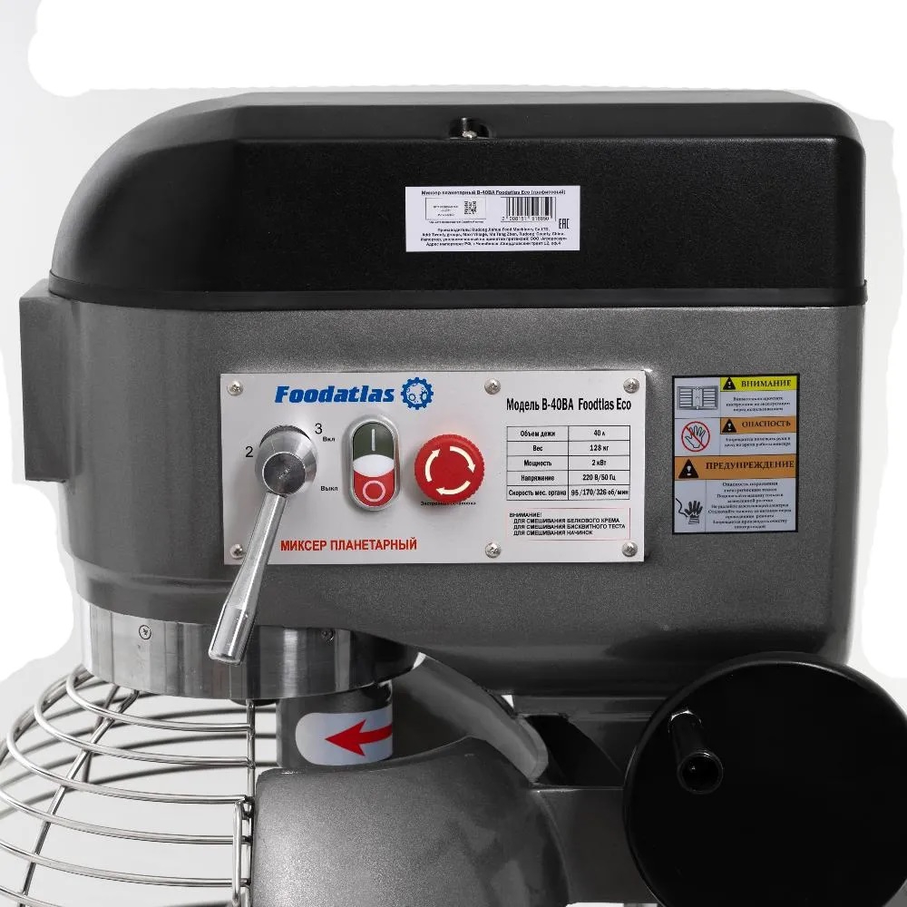 Миксер планетарный B-40BA Foodatlas Eco (графитовый) не предназначен для производства дрожжевого, слоеного теста и других видов крутого теста.