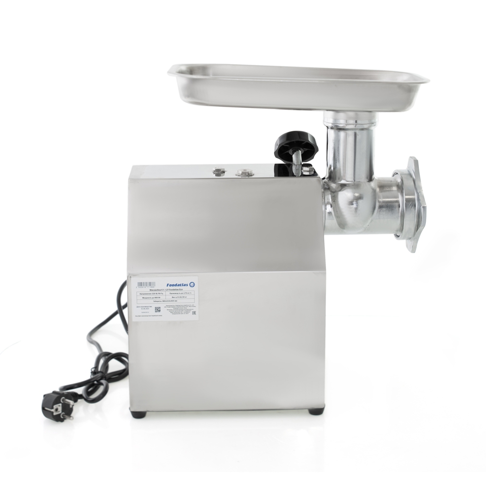 Мясорубка Foodatlas Eco KY-12P предназначена для измельчения кускового бескостного мяса и рыбы. Измельченный мясной компонент используется для дальнейшего создания котлетных форм, наполнение колбас и т.д.