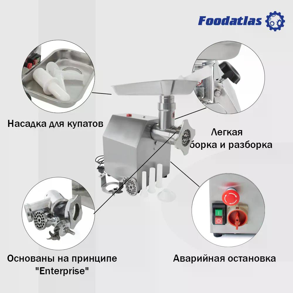 Мясорубка TK-12P FoodAtlas предназначается для получения фарша необходимой консистенции из мяса, рыбы или других видов продуктов, в том числе мягких овощей, фруктов и др.