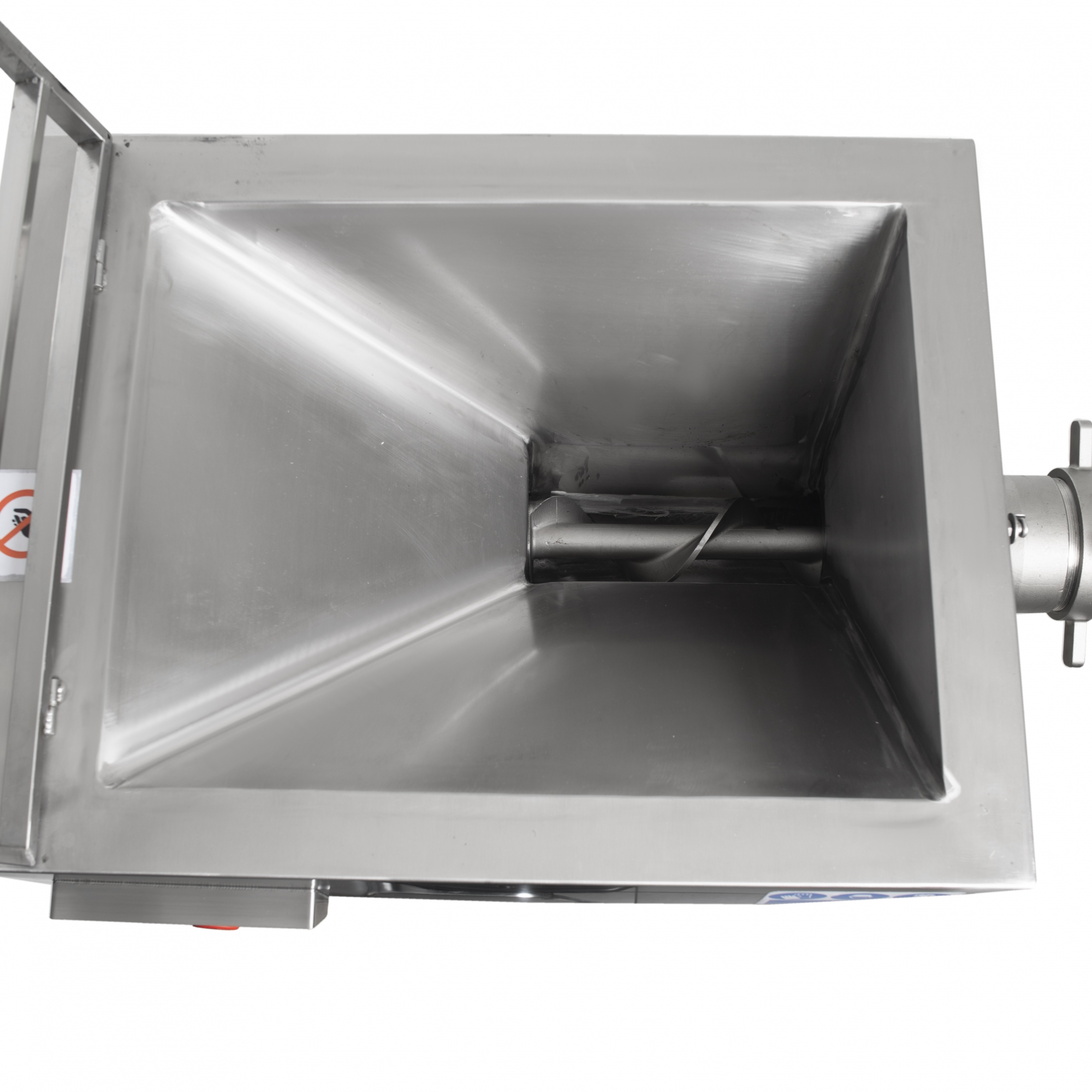 Волчек JR-120 может измельчать замороженное мясо с температурой до -7С, предварительно разрезанное на пиле или блокорезке до необходимых размеров (не более 50мм). JR-120 надежен, прост в обслуживании и эксплуатации. На данной модели установлены самозатачивающиеся ножи, что значительно упрощает обслуживание и увеличивает срок службы ножевого комплекта.