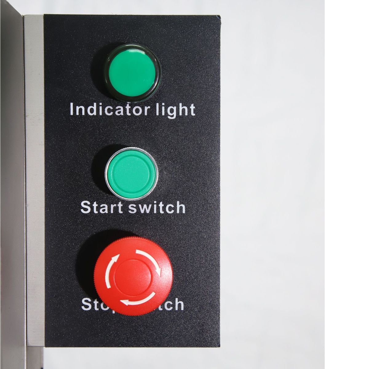 7. Двигатель с тормозом, колесные опоры, кнопка аварийной остановки, датчик на крышку, автоматическая система очистки полотна и шкивов, металлическая вставка в рабочем столе.
