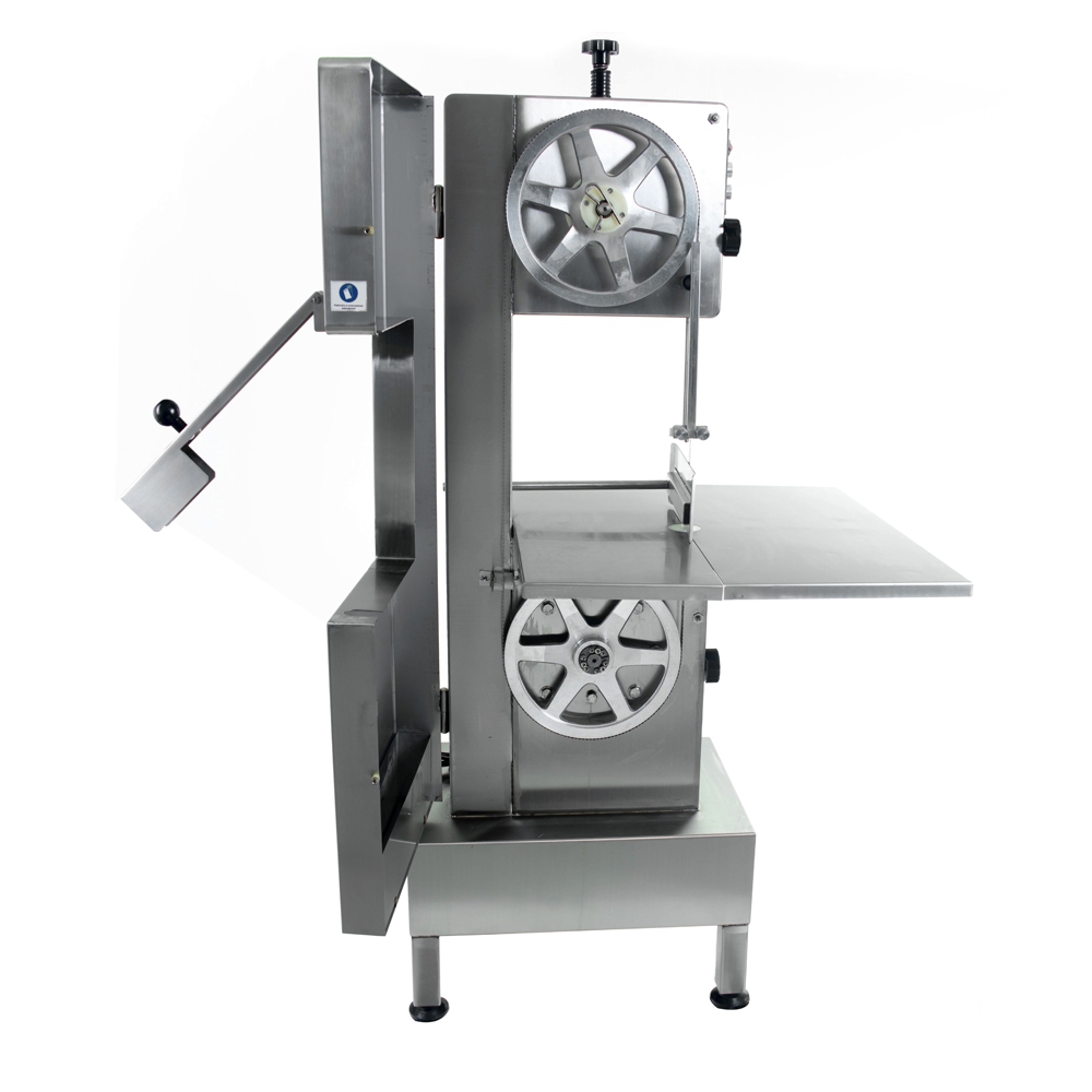 Ленточная пила с подвижным столом JG-400A является аналогом модели JG-500A, но более компактная. Предназначена для распиловки замороженного мяса, мясных полутуш и цельных туш, а также порционной разделки мясных, рыбных и мясокостных полуфабрикатов. В результате работы ленточной пилы на выходе получается мало обрезков, то есть, нет невостребованных отходов.