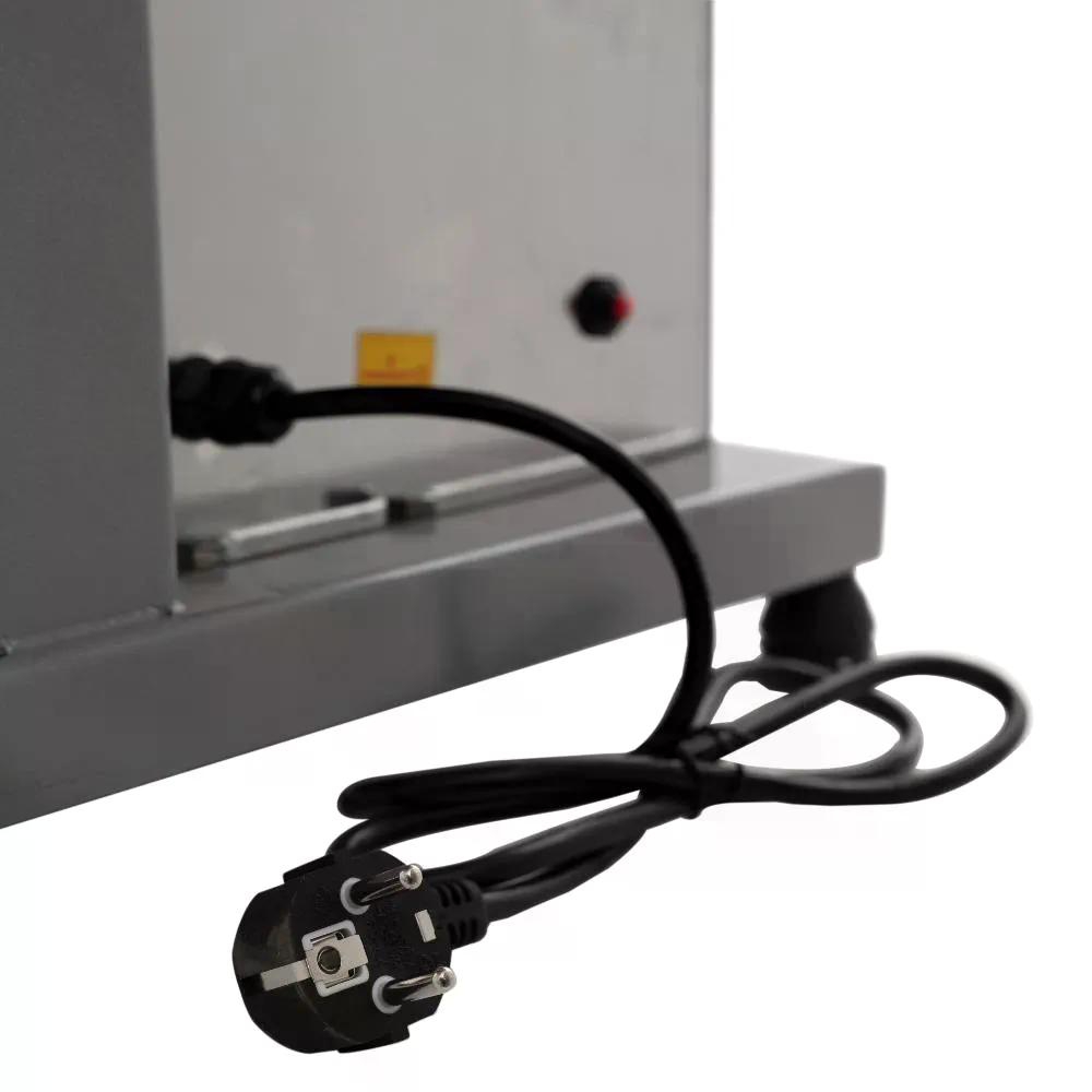 - Рабочая часть (стол, ограничитель, толкатель) выполнены из нержавеющей стали. Основной корпус выполнен из окрашенного металла.