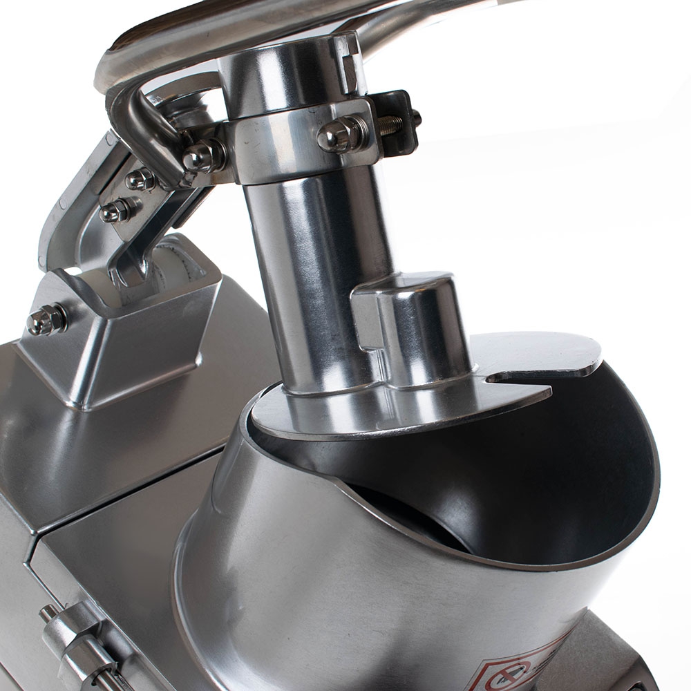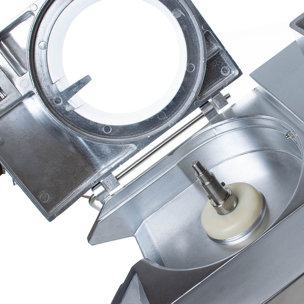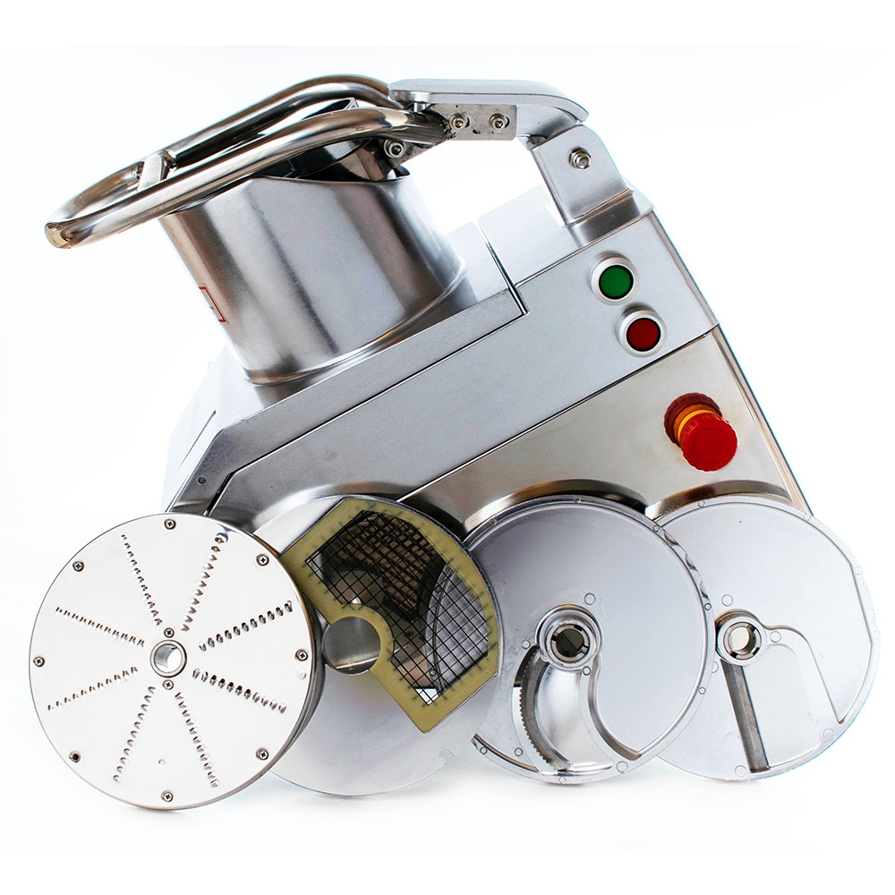 Оборудование укомплектовывается 5 ножами для нарезки ломтиками, соломкой, пластинками, кубиками. Все кусочки имеют одинаковый размер. При этом сохраняется внешний вид, текстура и сочность продукции.
