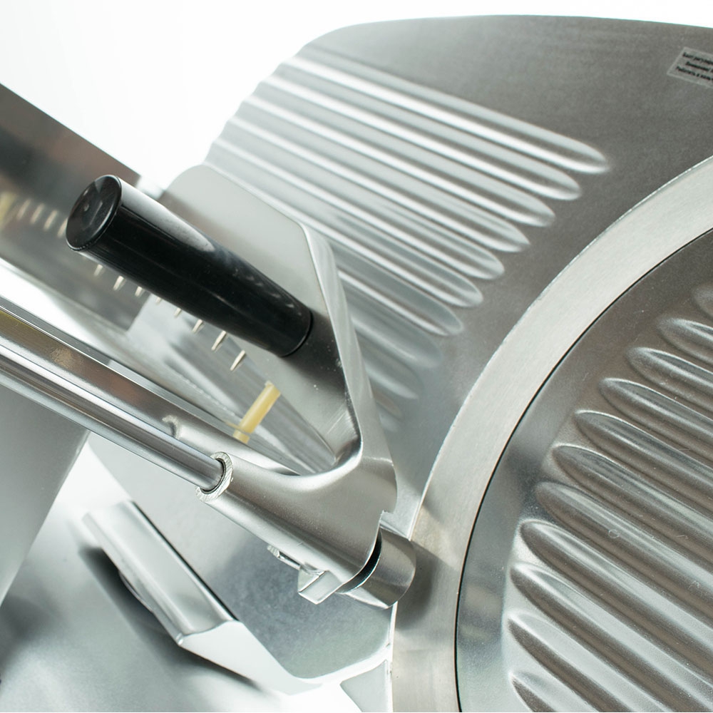 Конструкция слайсера обеспечивает ровный срез строго по заданному размеру. Высокая точность нарезки позволяет рассчитать в граммах выход готового продукта. Такое пищевое оборудование оснащено защитным кожухом, делающим процесс нарезки максимально безопасным.