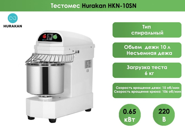 Спиральный тестомес Hurakan HKN-10SN предназначен для профессионального использования. Применяется для замешивания теста на предприятиях общественного питания, в кондитерских, пекарнях, гипермаркетах с собственной кухней.
