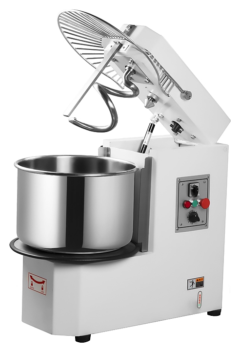 Замешивание теста осуществляется одновременным вращением спирали и дежи. Модель оснащена защитным кожухом. Дежа выполнена из нержавеющей стали.