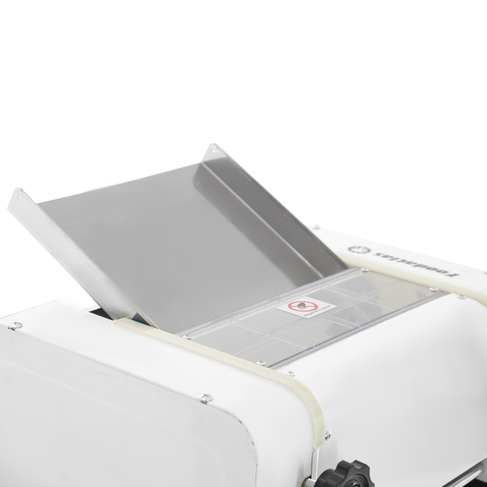 Тестораскатка-лапшерезка FA-300RT представляет собой сборно-сварную систему с боковыми плитами. С боковых сторон к системе закреплены плиты, соединенные с верхним и нижним валами. Зазор между ними от 1-14 мм устанавливается в зависимости от характеристик продукта, с которым будет осуществляться работа.
