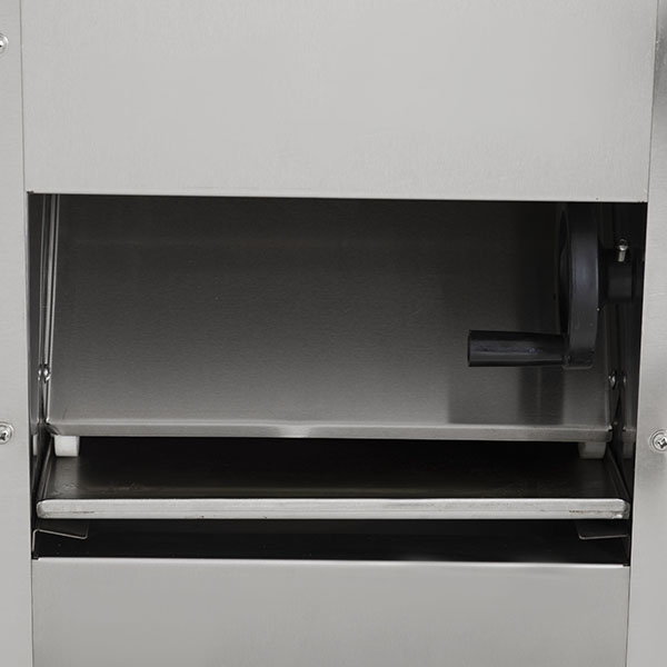 - Эксцентриковая система регулировки зазора между валами. Зазор толщины раскатываемого теста координируется в ручном режиме с помощью регулятора валка и варьируется от 1 до 22 мм.