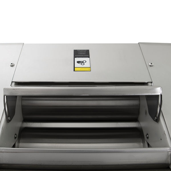 - Полнотелые раскаточные валы изготовлены из нержавеющей стали и оснащены специальными средствами очистки.