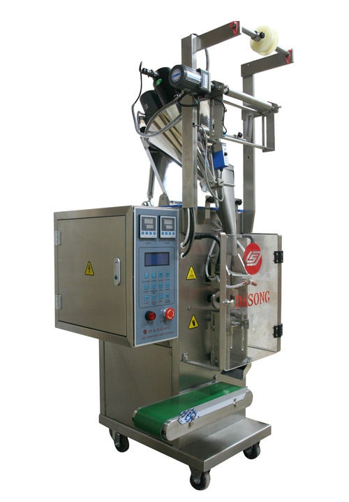 Упаковочно-фасовочный автомат DXDK-60CH имеет простой принцип работы: размещенный в бункере фасуемый продукт дозируется в зависимости от объема мерных стаканов, отмеренная доза сбрасывается в блок формирования упаковки, после чего происходит запайка и обрезка пакета.