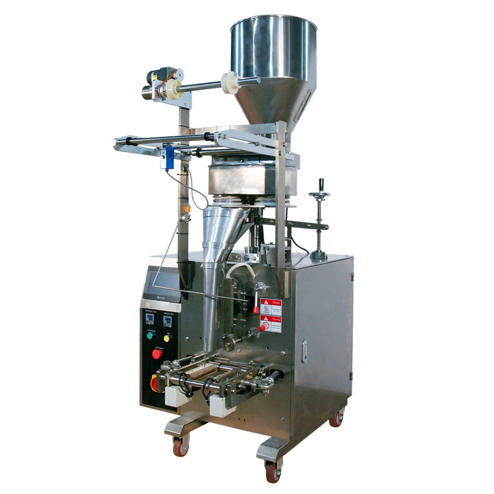 Вертикальный фасовочно-упаковочный автомат MAGIKON-150AV-FH предназначен для упаковки порошкообразных, пылящих продуктов (порционные сахарная пудра, ванилин, молотый черный и красный перец, паприка, а так же непищевые продукты: различные удобрения, стиральный порошок и т.п.) в трехшовный плоский пакет (четырехшовный опционально) размером от 30х40 до 150х200 мм. Комплектуется шнековым дозатором с пределом дозировки 50-500 мл. (достигается сменой шнеков) и упаковочным автоматом с производительностью 30-70 упак/мин. Все элементы, имеющие непосредственный контакт с продуктом, выполнены из нержавеющей стали.