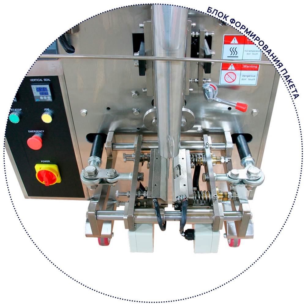 Расширить функционал модели можно за счет установки под заказ дополнительных опций таких, как: функция подбой, термопринтер даты, установка "европросечки", функция "дата в шве пакета". Корпус дозатора и упаковочной машины выполнены из нержавеющей стали.