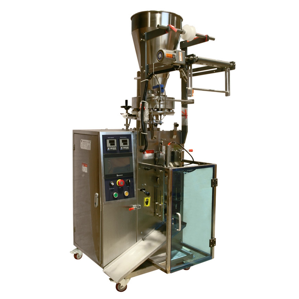 Вертикальный фасовочно-упаковочный автомат MAGIKON-80AVKPD предназначен для упаковки сыпучих продуктов (порционные сахар, соль, перец, растворимый кофе, специи и.т.п.) в трехшовный пакет "саше" (четырехшовный опционально) размером от 30х30 до 170х110 мм. Комплектуется объемно-роторным дозатором с пределом дозировки 1-100 мл. и упаковочным автоматом с производительностью 40-80 упак/мин. Все элементы, имеющие непосредственный контакт с продуктом, выполнены из нержавеющей стали.
