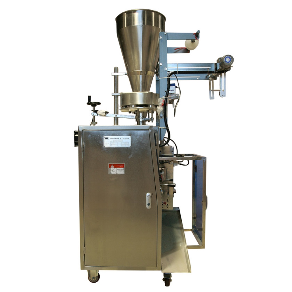 Автомат фасовочно-упаковочный MAGIKON-80AVKP предназначен для фасовки сыпучих гранулированных продуктов (кофе, сливки, сахар, гранулированный чай и т.д.) в трехшовный пакет (четырехшовный опционально) размером от 30х40 до 150х120 мм. Комплектуется объемно-роторным дозатором с пределом дозировки 1-100 мл. и упаковочным автоматом с производительностью 55-80 упак/мин. Все элементы, имеющие непосредственный контакт с продуктом, выполнены из нержавеющей стали.