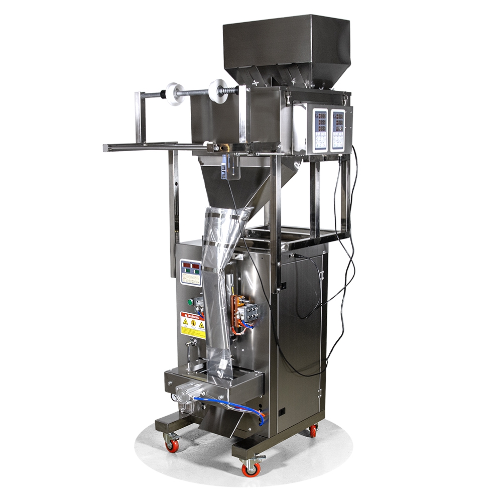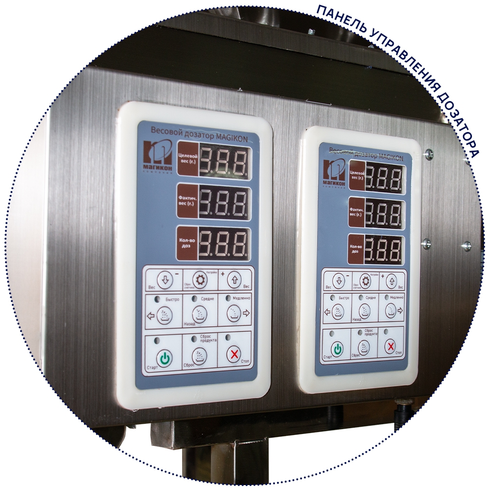 Автомат MAGIKON AVW2BR500II состоит из двух модулей: упаковочной машины с пневматическим запаечным приводом и двухинейного весового дозатора с диапазоном дозирования от 10 до 500 гр. Для экономии пространства и более удобной работы оператора дозатор размещен на упаковщике. Настройки дозации осуществляются на цифровой панели управления. Ввод параметров работы упаковщика производится посредством собственной панели управления. Машина оснащена датчиком фотометки, который позволяет работать с прозрачными, цветными и дает возможность использовать упаковочные пленки с рисунком.