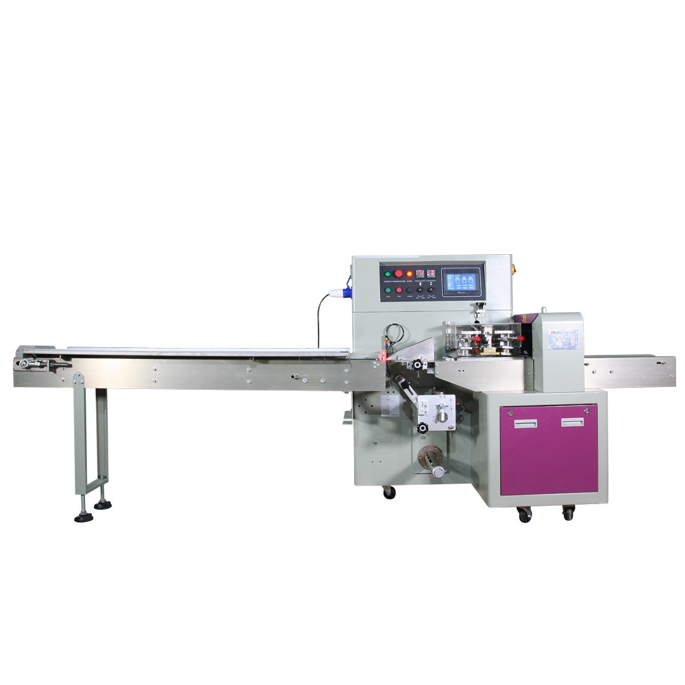Горизонтальный упаковочный автомат MAGIKON-250AGXS - предназначен для упаковки различных изделий в упаковку «Flow-pack». Машина имеет нижнюю размотку пленки - для легких, бесформенных, мягких продуктов. Подходит для длинномерных продуктов таких, как хозяйственные полотенца, бумажные платки, а также для упаковки лапши, колбасных изделий, рыбы, мороженого, мармелада, печенья, свежих фруктов и т. д. Мелкоштучные продукты упаковываются по-одному, а для групповой упаковки сначала должны быть упакованы в коррекс или коробку, или скреплены между собой. Продукты выкладываются на ленту транспортера в произвольном порядке.
