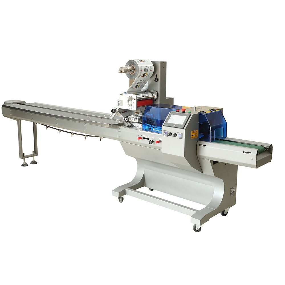 Сервоприводная горизонтальная упаковочная машина MAGIKON-350AGDS DAN применяется для потоковой, высокоскоростной упаковки твердых пищевых и непищевых продуктов (бисквиты, хлеб, кексы, кондитерские изделия, промышленные детали и т.д.) высотой до 70 мм в пакет Flow-pack размерами от 30х90 мм до 150х330 мм. Автомат оснащен подводящим транспортером с толкателем. Машина имеет верхнюю размотку пленки (максимальная ширина 340 мм и диаметр рулона до 320 мм), что позволило упростить установку дополнительных опций и обслуживание аппарата.