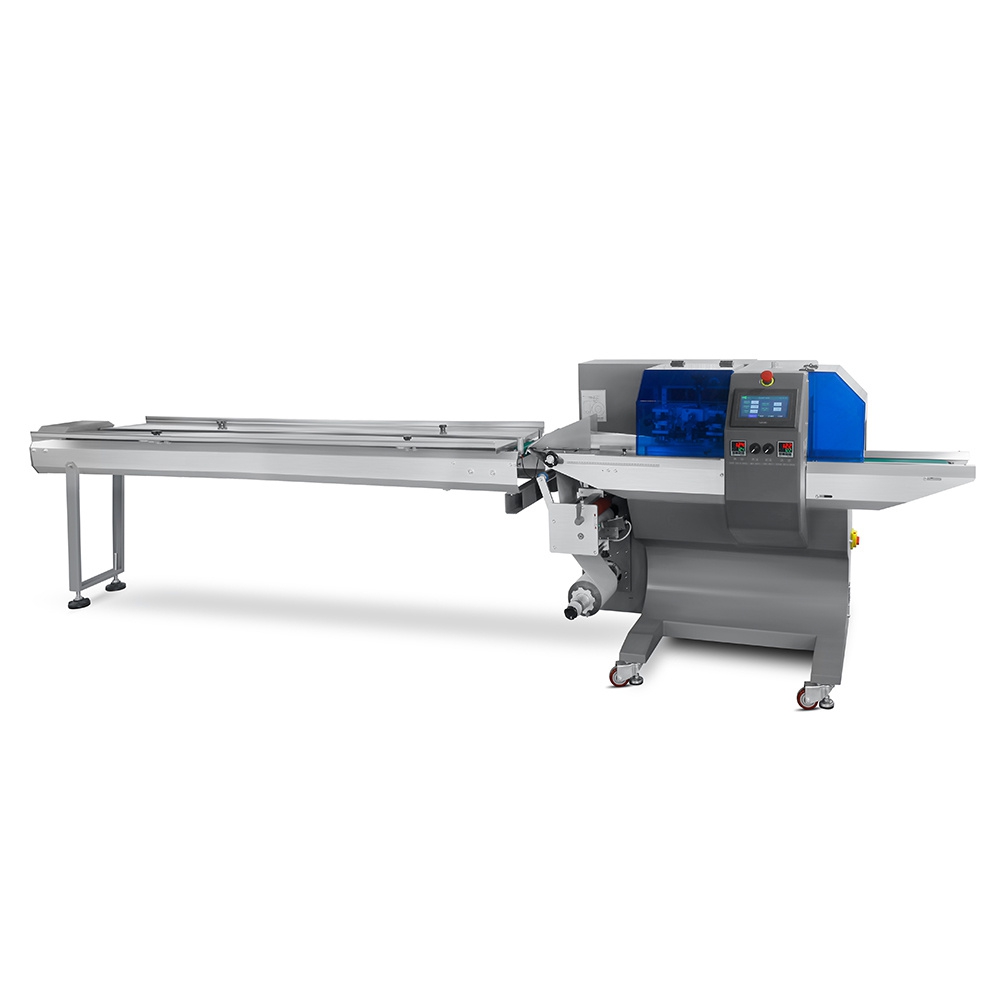 Сервоприводная горизонтальная упаковочная машина MAGIKON-350AGXS DAN применяется для потоковой, высокоскоростной штучной упаковки легких, бесформенных, мягких, а так же для групповой упаковки пищевых и непищевых продуктов высотой до 60 мм в пакет Flow-pack с шириной до 160 мм и неограниченной длиной. Автомат оснащен подводящим ленточным транспортером шириной 150 мм. Машина имеет нижнюю размотку пленки (максимальная ширина 340 мм и диаметр рулона до 320 мм).
