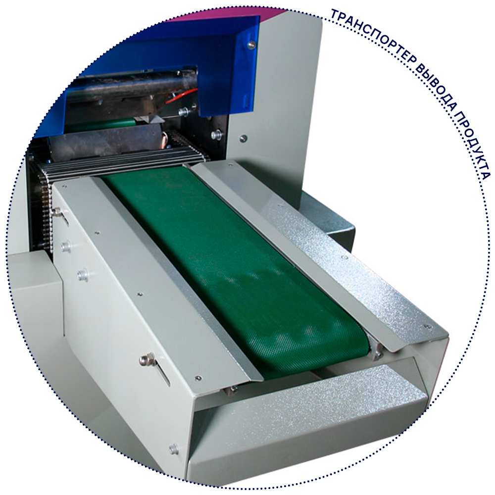 - Машина оснащена тремя серводвигателями и программируемым контроллером, длина отреза пакета определяется датчиком, что позволяет экономить время и пленку.