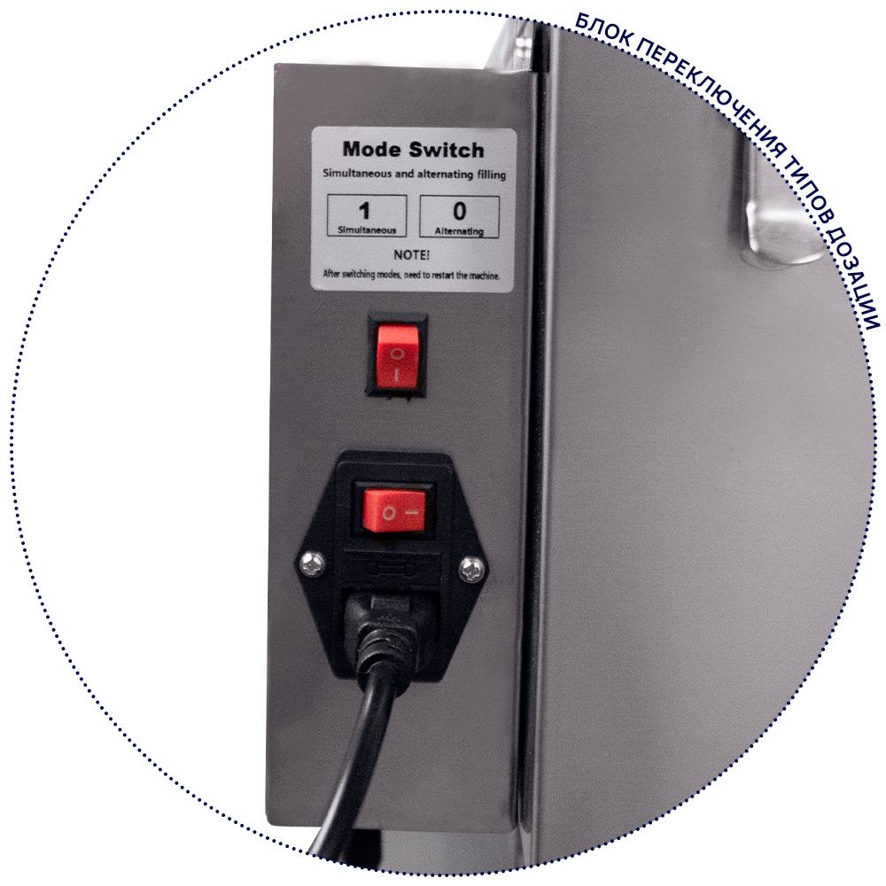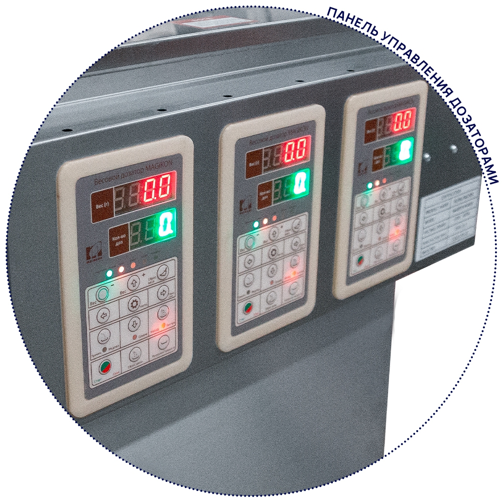 Управление — через электронную панель с русскоязычными обозначениями: оператор задаёт объём дозы на каждой линии, устанавливает тару под воронку и запускает цикл нажатием педали. Работает от сети 220 В, 50 Гц. Оптимален для малых и средних производств, где важны точность, гибкость и минимальное техобслуживание.