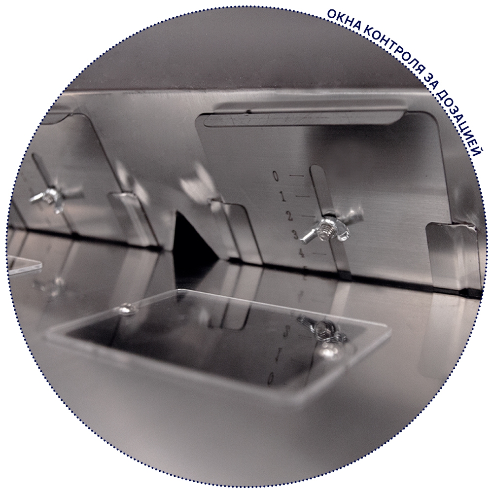 Каждая линия оснащена бункером объёмом 0,1 м3, обеспечивающим стабильную подачу без частых дозаправок. Выходное отверстие размером 7×4,5 см минимизирует осыпание и перекрёстное смешивание, а конструкция дозирующих каналов исключает залипание и комкование материала. Устройство выполнено в настольном исполнении с усиленной стальной рамой — легко монтируется на рабочий стол, конвейерную платформу или производственную стойку без дополнительной фиксации.