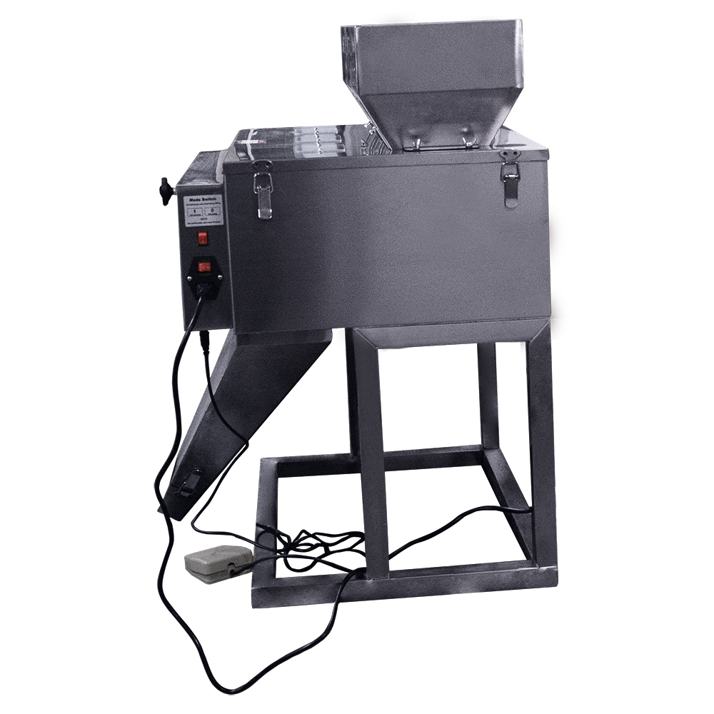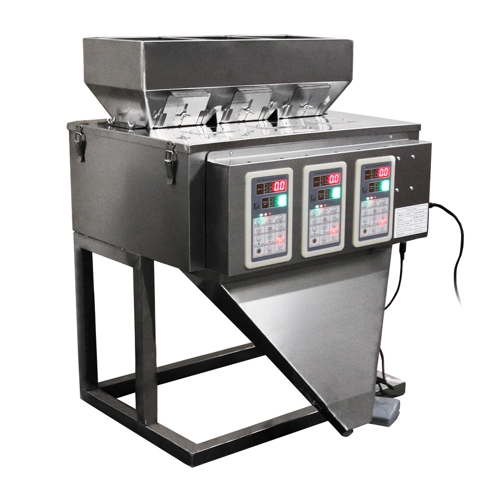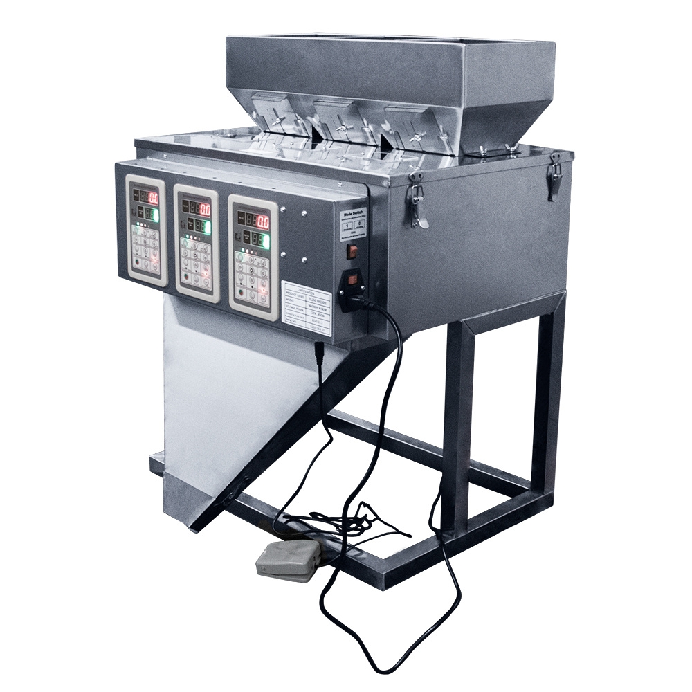Дозатор MAGIKON W3B200 — это высокоточный весовой модуль для полуавтоматической фасовки сыпучих материалов: от кофе и специй до лекарственных трав и гранулированных добавок. Устройство оснащено тремя независимыми линиями дозирования, позволяющими выполнять как тройной сброс одного продукта (до 600 г за цикл), так и одновременную фасовку трёх разных компонентов в единую тару — без смешивания потоков. Погрешность дозирования — ±0,1–0,2 г.