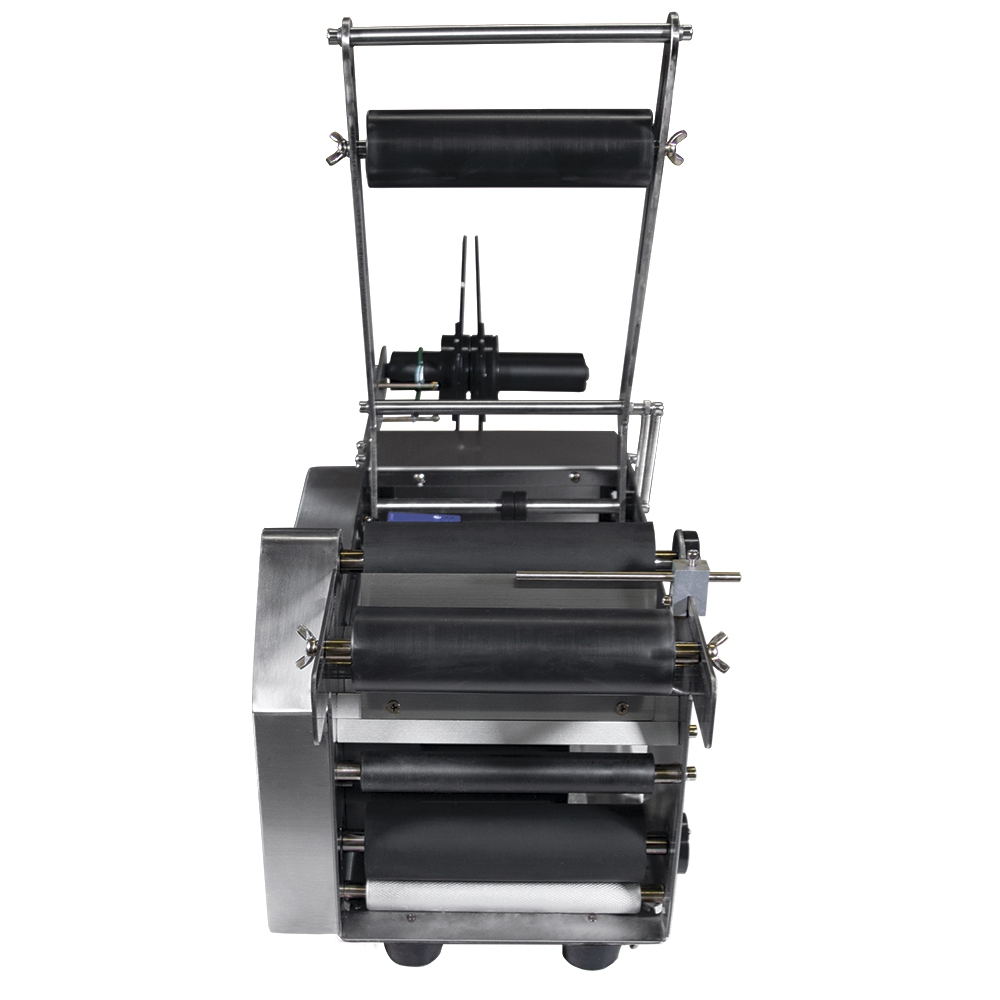 Тара помещается на валики, затем вручную оператор закрывает упор и аппарат автоматически прокатывая, одновременно наносит этикетку. Валики приводятся в движение электроприводом. Аппарат легко перенастраивается. Достаточно установить новый рулон с этикетками, заправить этикетки по схеме, как нарисовано в руководстве по эксплуатации, и начать работать.