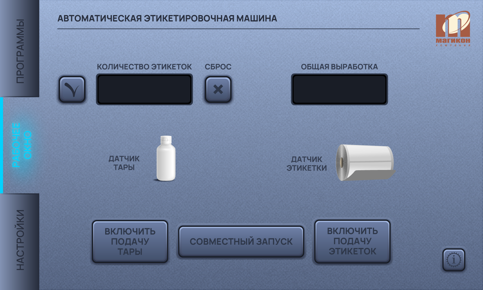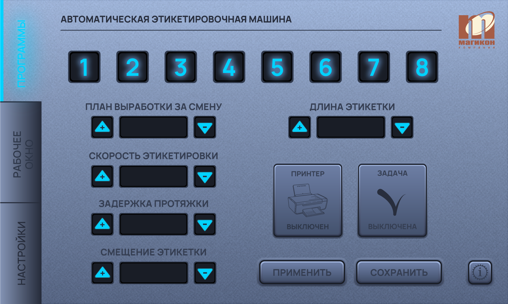 Программное обеспечение этикетировщиков MPFL-150A разработано специалистами компании Магикон. Русифицированный интуитивно понятный интерфейс обеспечивает простоту и удобства настройки и работы этикетировщика.