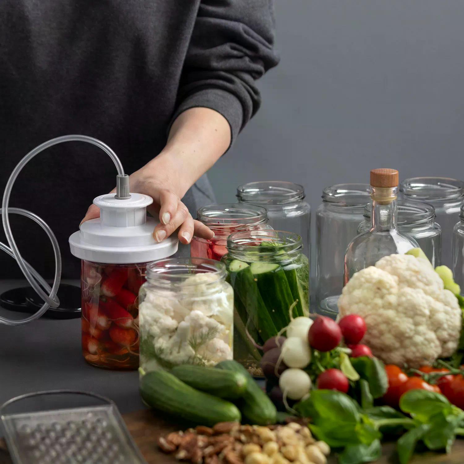 Также Вы можете переключить устройство в режим контейнера в любое время простым нажатием кнопки и вакуумировать контейнеры Lava из стекла, пластика и нержавеющей.